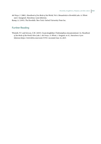 del Hoyo, J. (2001). Handbook of the Birds of the World, Vol 6. Mousebirds to Hornbills (eds. A. Elliott