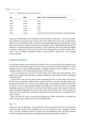 Table37.1 Feeding chart for young toucan chicks.