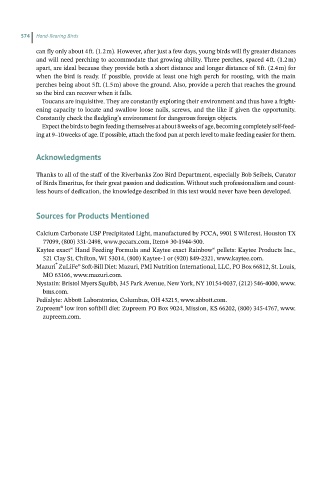 ing at 9–10 weeks of age. If possible, attach the food pan at perch level to make feeding easier for them.