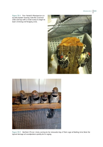 Figure 38.5 Northern Flicker chicks coming to the removable top of their cage at feeding time. Note the
