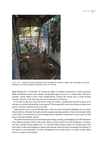 Figure 38.6 Aviary for small- to medium-sized woodpeckers. Note the ample logs and stumps to provide