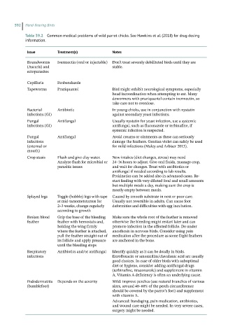 Table 39.2 Common medical problems of wild parrot chicks. See Hawkins et al. (2018) for drug dosing
