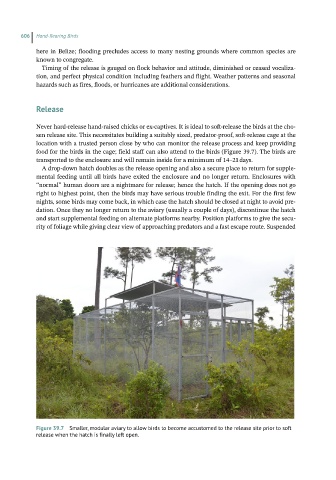 food for the birds in the cage; field staff can also attend to the birds (Figure 39.7). The birds are