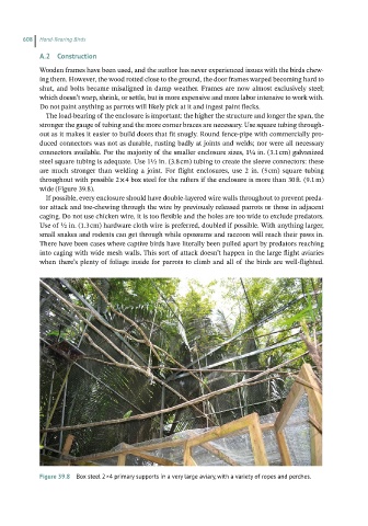 Figure 39.8 Box steel 2 ×4 primary supports in a very large aviary, with a variety of ropes and perches.