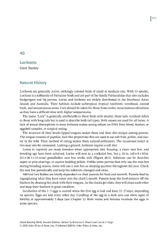 breeding age have been achieved. Lories will nest in a cockatiel box, but a 24‐in. tall × 8 × 10 in.