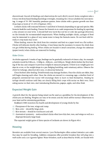 discontinued. Record all feedings and observations for each chick’s record. Some caregivers take a
