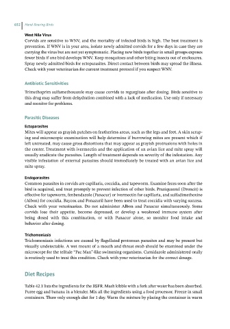 visible infestation of external parasites should immediately be treated with an avian lice and