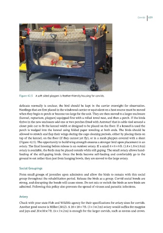 Figure 42.5 A soft sided playpen is feather-friendly housing for corvids.