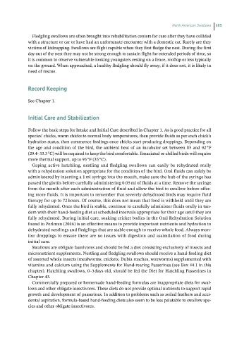 dehydrated nestlings and fledglings that are stable enough to receive whole food. Always mon-