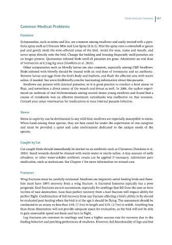 Ectoparasites, such as mites and lice, are common among swallows and easily treated with a pyre-