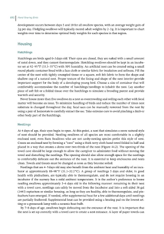 of natal down, and they cannot thermoregulate. Hatchling swallows should be kept in an incuba-