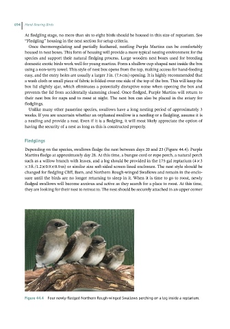 Figure44.4 Four newly-fledged Northern Rough-winged Swallows perching on a log inside a reptarium.