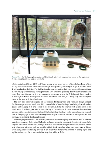 of the reptarium (Figure 44.5), or if in an aviary, in an upper corner of the sheltered end of the