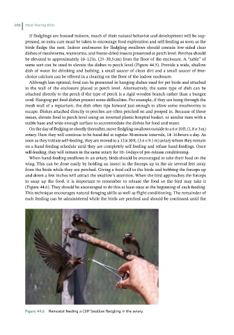 When hand‐feeding swallows in an aviary, birds should be encouraged to take their food on the
