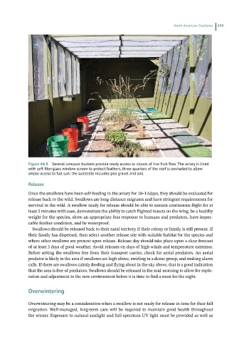 that the area is free of predators. Swallows should be released in the mid‐morning to allow for explo-