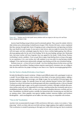 why towhees are so demanding of rehabilitators (Kasper 1998). Bowers (2013 pers. comm.) explained