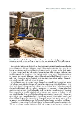 Figure 48.4 Laundry basket housing: screening over holes (attached with hot glue), perches, greenery,