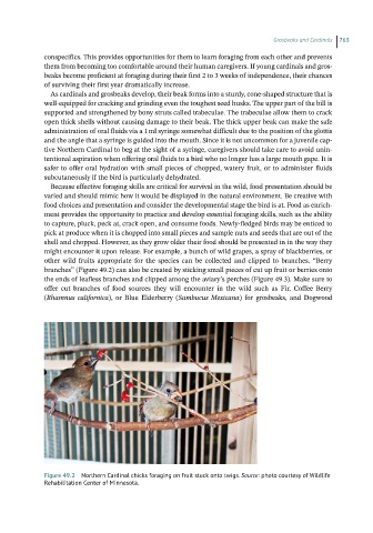 Figure49.2 Northern Cardinal chicks foraging on fruit stuck onto twigs. Source: photo courtesy of Wildlife