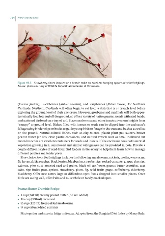 Figure49.3 Strawberry pieces impaled on a branch make an excellent foraging opportunity for fledglings.