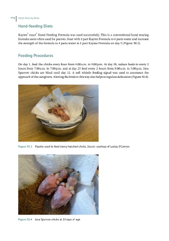 approach of the caregivers. Alerting the birds in this way also helps to regulate defecation (Figure 50.4).