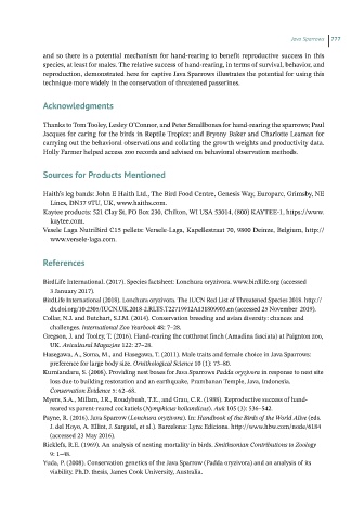 Payne, R. (2016). Java Sparrow (Lonchura oryzivora). In: Handbook of the Birds of the World Alive (eds.