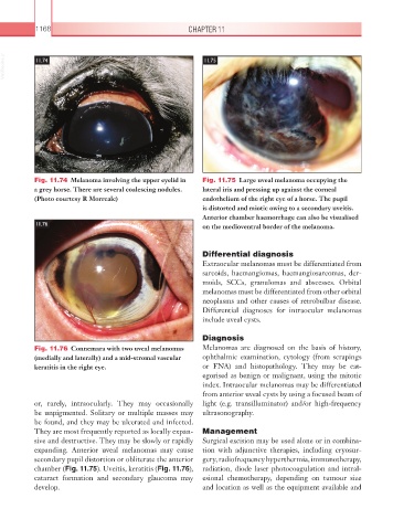 Fig. 11.74 Melanoma involving the upper eyelid in Fig. 11.75 Large uveal melanoma occupying the
