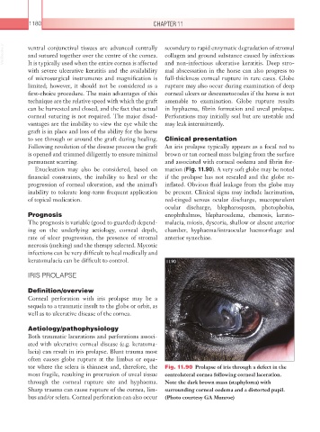 tor where the sclera is thinnest and, therefore, the Fig. 11.90 Prolapse of iris through a defect in the