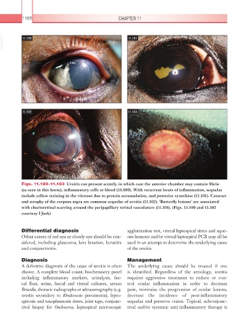 Figs. 11.100–11.103 Uveitis can present acutely, in which case the anterior chamber may contain fibrin