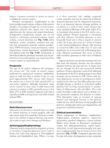 horse include corneal oedema, collapse of the anterior Acquired glaucoma may be categorised as primary,