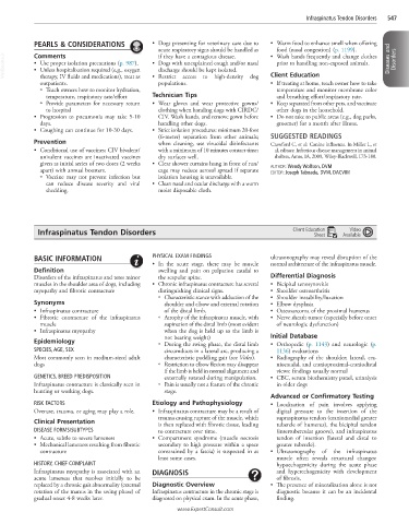 muscles in the shoulder area of dogs, including • Chronic infraspinatus contracture has several • Bicipital tenosynovitis