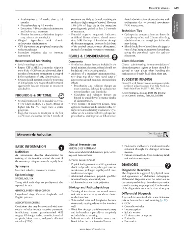 VetBooks.ir ○ Lomustine: 7-10 days after administration post-diagnostic period or first 2-3 months Technician Tips Diseases and Disorders
