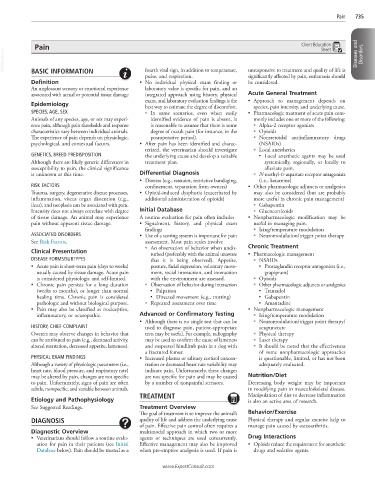 pain without apparent tissue damage. • Signalment, history, and physical exam useful in managing pain.