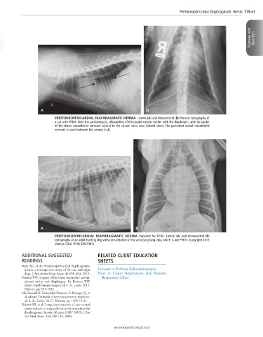 PERITONEOPERICARDIAL DIAPHRAGMATIC HERNIA Lateral (A) and dorsoventral (B) thoracic radiographs of