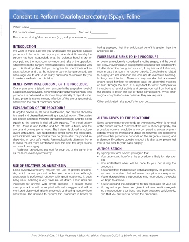 Consent to Perform Ovariohysterectomy (Spay), Feline