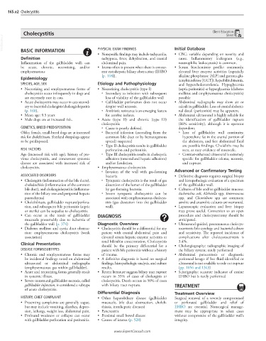 • Diabetes mellitus and cystic duct obstruc- • Cholecystitis should be a differential for any tocentesis: bile cytology and bacterial culture