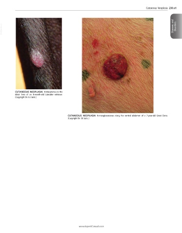 CUTANEOUS NEOPLASIA Hemangiosarcoma along the ventral abdomen of a 7-year-old Great Dane.