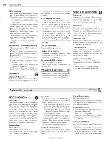(inner surface) of the heart. Infective endocarditis ○ Dogs with congenital subaortic stenosis or according to location.