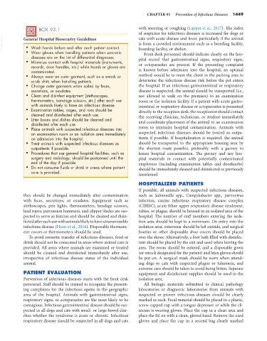 area of the hospital. Animals with gastrointestinal signs, suspected or proven infectious diseases should be clearly