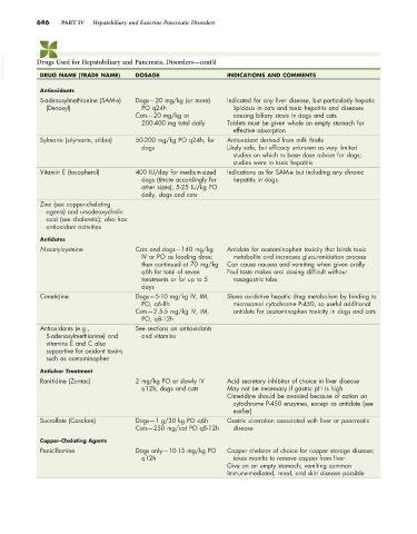 VetBooks.ir Drugs Used for Hepatobiliary and Pancreatic Disorders—cont’d INDICATIONS AND COMMENTS