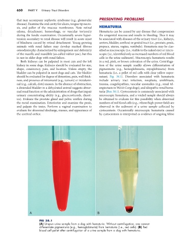 should be evaluated for degree of distention, pain, wall thick- natant; Fig. 38.1). Disorders associated with hematuria