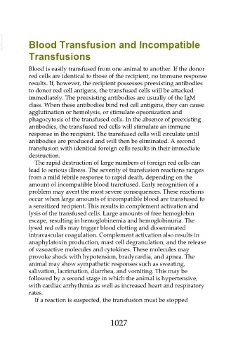 lysis of the transfused cells. Large amounts of free hemoglobin