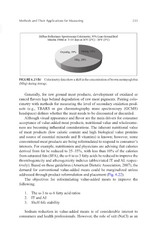 FIGURE 6.21(b) Colorimetry data show a shift in the concentration of brown metmyoglobin