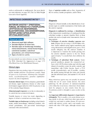 see main reference on page 305 (The Cat With Weight the iris surface, keratic precipitates, and/or fibrin.