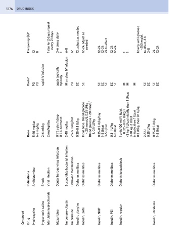 Frequency (h) b 12 8 1 day for every 21 days 3–6 times daily 1 6–8 12 12, adjust 12–24; adjust needed 12–24 12–24 24 to effect 12–24 12–24 1 1 hourly until glucose <250 mg/dl to effect, 6 h 3–8 24 12–24
