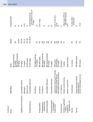 Continued Drug Sulfadimethoxine Sulfaguanidine Sulfamethazine, Sulfamethoxazole Sulfasalazine Sulfisoxazole sodium Suprofen 1% Tamiflu Taurine