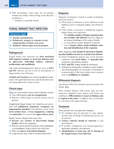 Fungal urinary tract infections are often associated ● Serum biochemical analysis may reveal azotemia