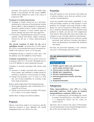Modify doses of drugs if excreted by kidneys.  ● FIV is morphologically and biochemically similar
