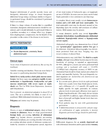 abdominal lavage using a technique similar to diagnos- Septic peritonitis is less common in cats than dogs.