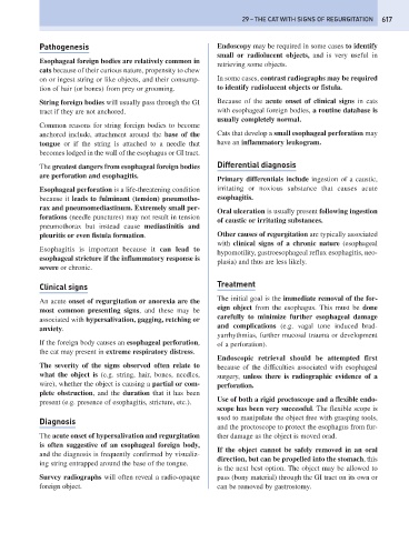 String foreign bodies will usually pass through the GI Because of the acute onset of clinical signs in cats