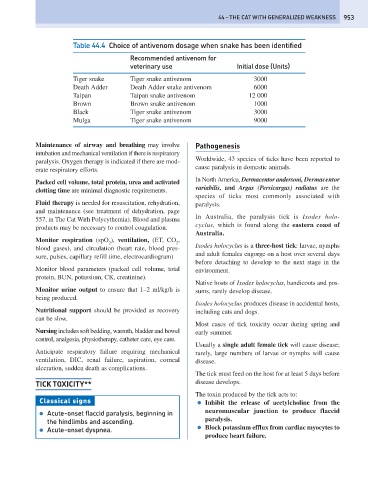 Table 44.4 Choice of antivenom dosage when snake has been identified